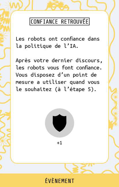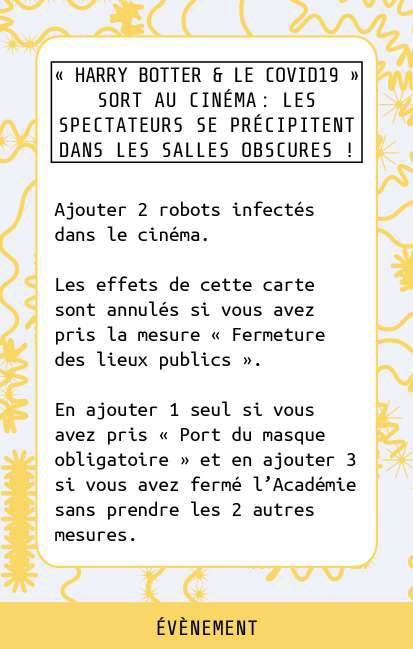 La version que vous vous apprêtez à jouer est une première version. Nous l’avons développé rapidement, avec les moyens du bord, elle fonctionne mais n’est pas exempt de bugs... Si vous en constater, contactez-nous, nous apporterons les modifications pour dans le cadre d’une amélioration continue :-)